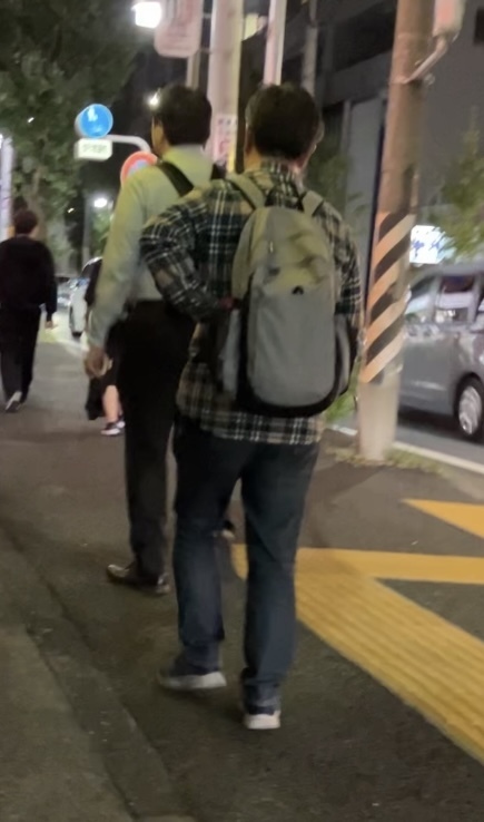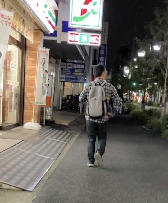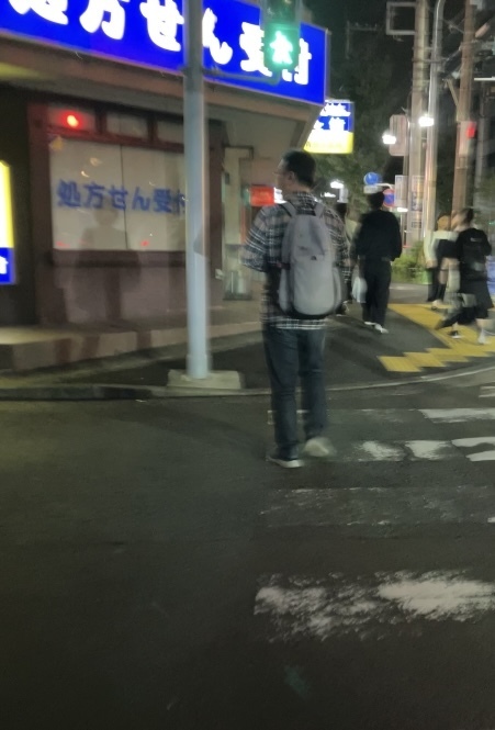 なぜか北口から出て、こちらが気づいて時間潰してやり過ごそうとしたら、突然横断歩道をタ渡って、例の日照遮り駅前マンションの前を通って駅方面へ突然引き返した。左耳には指示待ちイヤホンを片方だけつけていた。